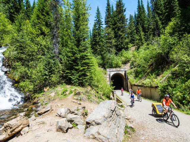 Spot wildlife like moose, elk, osprey, and bald eagles along the way. With smooth paved terrain, convenient rest stops, and access to friendly small towns along the trail, it’s ideal for riders of all ages and abilities.
